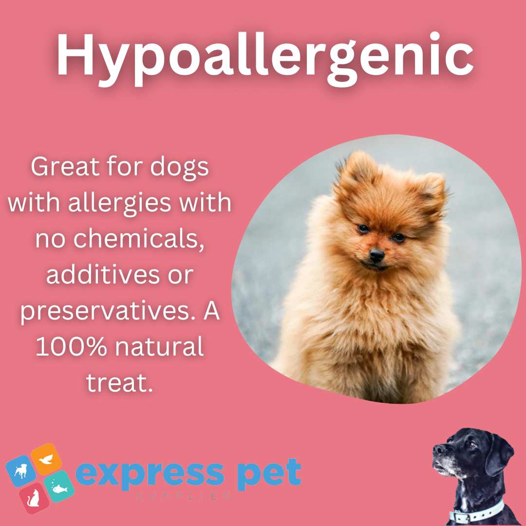At Express Pet Supplies our duck sticks are a great natural treat for dogs. A hypoallergenic dog treat, a small treat that you can keep in your pocket on walks or to be used as a training dog treat. These can be fed to dogs with sensitive stomachs and digestion problems.